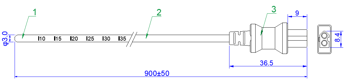 3 | Plug | TPE(Type M2) Compatible with Molex 03-06-1023 | 1 | white |